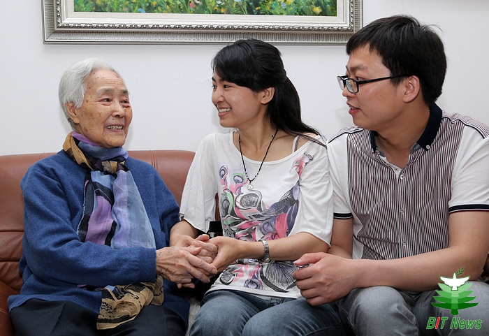 每年暑假黎扬全家都会去威海避暑,去年八月也不例外。黎扬女士虽然已经是九十多岁的高龄,但是身体依然非常硬朗,每年都会下海游泳,一些常在海边戏水的当地人都记得这位老当益壮的游泳健将。然而去年8月23日,在一次游泳过后,黎扬女士不幸得了中风。黎扬被送到当地医院抢救时,医生马上就下了病危通知,断定她是脑梗塞。幸运的是,当地医生对老人进行了紧急救治,让老人得到很好的治疗,才没延误病情。经过几个月的悉心照料,黎女士逐渐恢复了意识,又能坐起身来了。当她彻底清醒时,她想到的第一件事就是为母校继续捐款。