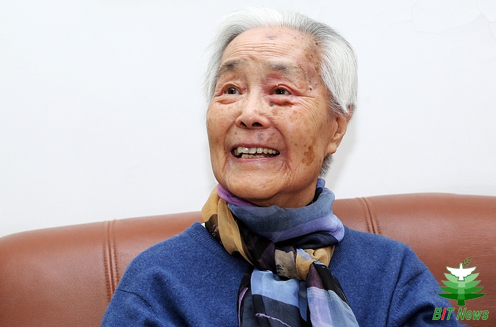 在三里河的家中,我们见到了这位老校友。花白的头发映衬着她白晰的脸庞,沧桑的皱纹诉说着岁月的变迁。她身体消瘦,精神矍铄,要不是介绍,真看不出这位老者已是95岁的高龄。虽然衣着简朴,蓝色的袖口已经起了毛边,但是依然不能掩盖她那婉约高贵的气质。说起话来,她微微带笑,眼睛里全是和气,浅浅的、淡淡的,像盛开的葵花一样温暖——岁月带给她的是恬静安详的内心和坚定忠诚的信仰。