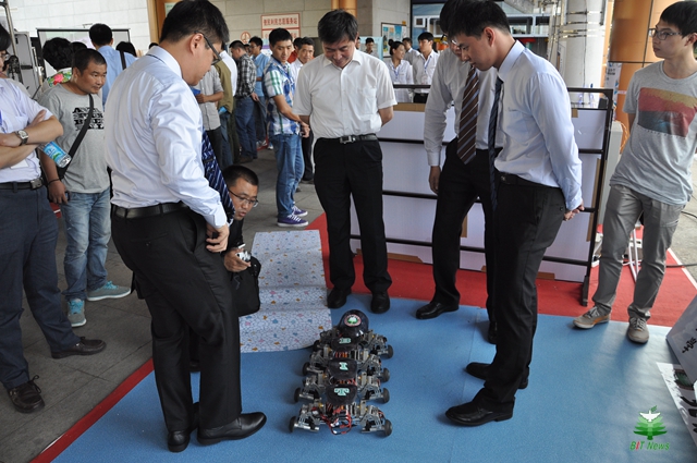 2011年,罗庆生在电视上看到一台日本研制的八腿多关节机器人,自重16kg,有20种步态,甚至能走“诡秘的太空步”,很受震撼,当即给学生提出研制“属于中国的,自重8kg,40多种步态的机器人”,面对并无信心的学生,罗庆生说“不慌否定,不慌拒绝,我给你们一个星期时间进行思考,谋定而后动。”一周后,经过仔细思索和反复钻研的学生们果然不再以为高不可攀,而愿意尝试,团队形成了共识,积极主动地投入到紧张、艰苦、甚至枯燥的研制之中。为了避免“先天不足”,仅关于结构方案细节的讨论就达5次之多。“我们先找出尽可能优化的方案,再去探讨工程图纸的绘制,严格细致的规定每一个细节。”历经十个月的“锤炼”,一台自重8kg,能走48种步态的机器人终于诞生了,这项“MADE IN BIT”的作品不仅在中俄工科大学联盟首届机器人比赛中一举包揽了最佳创意奖和最佳表现奖,还在第四届全国大学生创新创业年会上惊艳亮相,以高票数当选“我最喜爱的十佳项目”,并名列第一,得到各界高度评价。