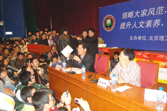11月17日晚7时,bb贝博艾弗森官方网站第十一期“聆听智慧”名家论坛在中教报告厅举办,应我校学生工作处邀请,新东方的三位主要创始人徐小平、王强、俞敏洪来到我校,依次登台,为我校师生作了题为“面对挫折,拥抱梦想,为梦想而来”的精彩讲座。学生工作处处长刘明奇老师亲自主持了本次讲座。