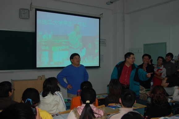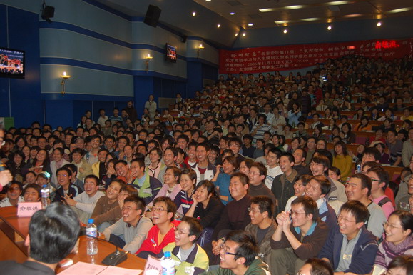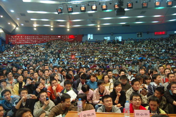 早在17日上午,就有同学早早的来到中教报告厅等着聆听三位老师的讲座,讲座开始前两个小时,能容纳500人的中教报告厅已座无虚席,而且过道里都挤满了热情的听众,学生工作处为没有座位的同学事先准备了坐垫和报纸。