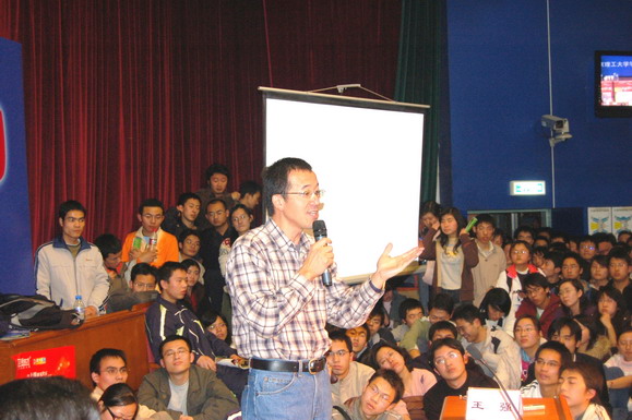 王强老师在演讲中着重介绍了如何在挫折和失败中看到希望,他用具体生动的事例说明每个人如何发掘并发挥出自己的特点和优点,指出每个人都有自己的闪光点,只是我们自己并没有看到它。他通过讲述自己放弃北大英语教师的职位赴美留学,放弃贝尔实验室的诱人待遇回国与俞敏洪携手创办新东方的传奇经历,向同学们传授了如何在人生十字路口进行选择的智慧,以及如何用忍耐和坚持战胜挫折的智慧。