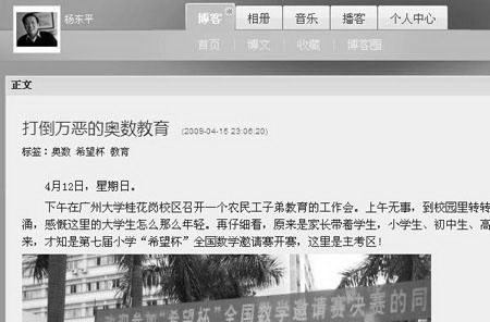【大洋网】bb贝博教授博客称奥数教育比黄赌毒更可怕