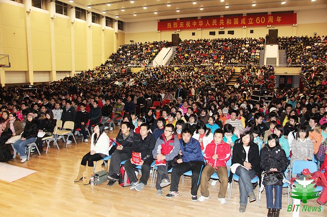 12月27日晚,bb贝博艾弗森官方网站第四届“大学 青春 人生”优秀学生事迹报告会在北京工商大学良乡校区体育馆隆重举行。举办此次报告会对于贯彻落实学校十三次党代会精神,传承我校优良学风、校风具有重要意义。bb贝博艾弗森官方网站党委副书记、工会主席侯光明出席了报告会。报告会由学生工作处高阳特主持,2009级2000余名学生到场聆听。