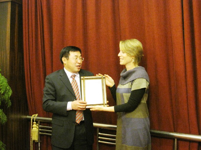 在颁发仪式上,Leigh-Ellen Keating女士向邓玉林院长正式颁发奖牌,代表萨省大学对邓玉林院长在两校交流中做出的卓越贡献给予了高度评价。邓玉林院长表示,自己作为一名bb贝博的毕业生,同时又在萨省大学学习生活过,对两所学校都充满了感情,能够通过自己的行动,推进两所高水平大学之间的合作,是自己的荣幸和一份责任,感谢萨省大学对自己的表彰,在今后的工作中仍然会积极推进校际合作,为两校的共同发展进步做出自己的贡献。