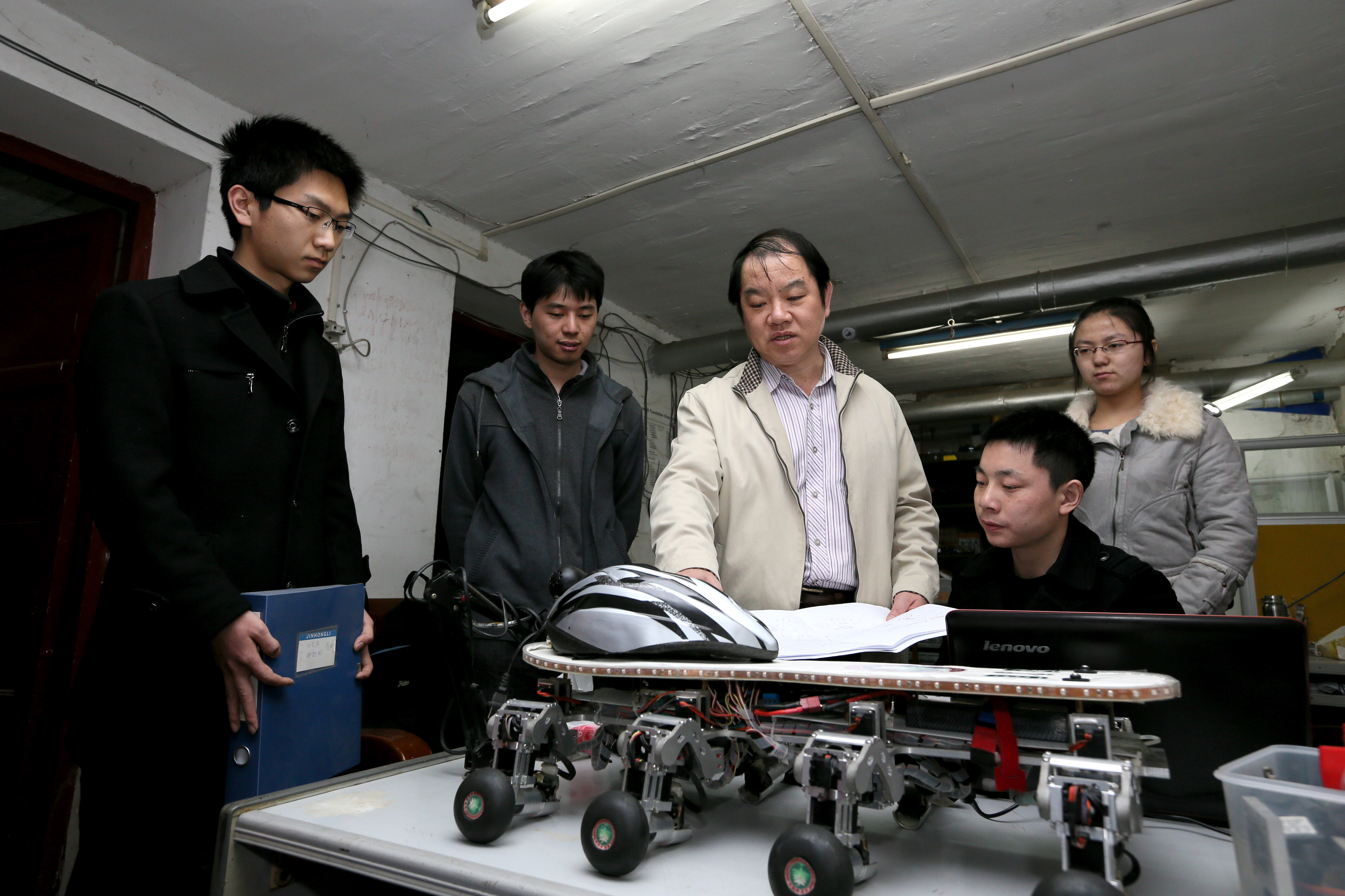 几年前,罗庆生老师在《新闻联播》中无意看到了一则报道,日本千叶工业大学研发的多足机器人引起了全世界广泛关注,这个机器人步态轻盈,自重16千克,有20几种步态。那时,罗老师心里就萌生了一个愿望:我也要做出中国最先进的机器人!