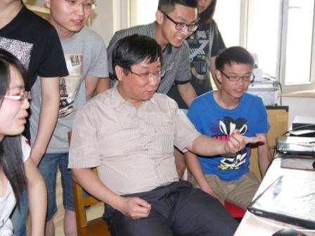 金老师在博士毕业留校后,最开始讲授的课程是工科数学分析。现在他为本科生主讲的是《光电成像原理与技术》、《辐射度,光度与色度》,前者被评为国家精品课程。此外,他还为研究生讲授现代光电图像处理方法等课程。在教育部教学指导委员会工作15年,他认为一个好的老师既要投入足够的精力,又要掌握精湛的教学方法。为此,金老师孜孜不倦地学习着、研究着,不断与学生沟通交流,来调整自己的教学计划和教学方法。