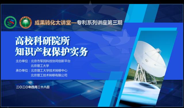 “成果转化大讲堂”——专利系列讲座由北京市军民科技协同创新平台和bb贝博艾弗森官方网站技术转移中心共同策划,结合《关于提升高等学校专利质量 促进转化运用的若干意见》等文件精神,邀请业内资深专家围绕专利“高质量创造、高效益运用、高标准保护、高水平管理”做精彩分享,助力军民科技协同创新和科技成果转移转化。