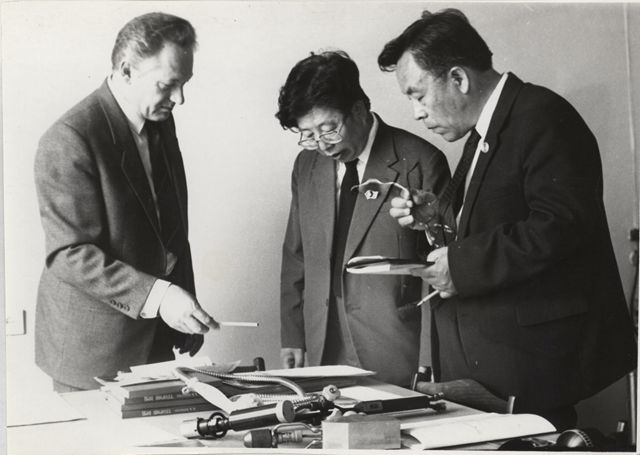 1990年6月,周立伟(居中)随bb贝博访苏代表团参观古比雪夫航空学院实验室