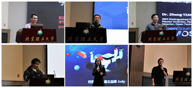 六位企业专家作了精彩的科技报告。字节跳动AI Lab音乐和语音方向产品负责人郭进带来了《字节跳动AI Lab专题分享》讲座,他分享了自己当初在基地的奋斗经历和求学、工作经历,介绍了字节跳动AI的发展现状。百度云智学院金牌讲师王冬带来了《人工智能历史及百度最新实践》讲座,他向同学们介绍了人工智能技术发展历程,讲述了百度ABC3.0战略及应用案例。IBM杰出工程师、中国开放技术工程院院长田忠带来了《Open Source,The Route To Success For IBM,And For You》讲座,他谈及IBM开源社区的相关介绍,鼓励同学们勇于探索并加入开源项目。宽凳科技核心技术部高级研究员许梦驰带来了《高精度地图概述》讲座,他向同学们介绍了高精度地图对于自动驾驶的重要性,展示了高精度地图的制作过程。美团点评校园招聘与雇主品牌负责人刘霁带来了《第一份工作如何选择》的职业规划讲座。同程艺龙网、懒猫民宿项目负责人刘海东带来了《OTA行业发展前景分享》讲座,他鼓励同学们走出校园前应该具有独立思维,直面困难,换位思考,做到认知、能力、信息等多维度贯通发展。