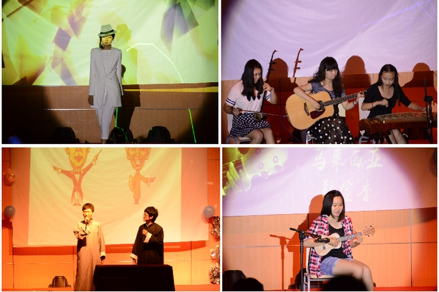 一场节奏欢快、激情澎湃的热舞《Gentleman》拉开了晚会的序幕。晚会上,舞蹈、相声、朗诵、合唱、歌舞剧各类节目轮番上阵,可谓是精彩纷呈。其中,英文歌曲串烧《Roman has it& Someone like you》热情洋溢的歌声将全场点燃;形式新颖,古典舞与现代舞相结合的舞蹈《浮生若梦》,展现了设计学子的青春与活力;值得一提的是,由设计学院红色“1+1”共建单位石景山区依翠园北党支部舞蹈队与设计学子共同演绎的新疆舞,向我们展现了浓郁的异域风情,她们欢快的节奏,优美的舞步将整场晚会推向高潮。