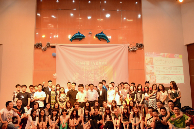 迹•艺青春,记忆你我。为了进一步推进“我的中国梦——奋斗的青春最美丽”主题教育活动,以创新思路做好学院德育工作,2014年6月11日晚,设计学院“迹艺青春”德育主题毕业晚会在良乡校区综合教学楼演艺厅隆重举行。校纪委书记杨蜀康,校长助理、基础教育学院党委书记姚利民,石景山区依翠园北党总支书记赵丽君,社区主任王立荣,学生工作处副处长许欣,校团委副书记陆宝萍,设计学院副书记、副院长孙飞,学生工作处教育科科长李冰以及其他学院专兼职团干部出席了此次晚会,设计学院2014届本科毕业生,2011、2012、2013本科生参加了此次晚会。