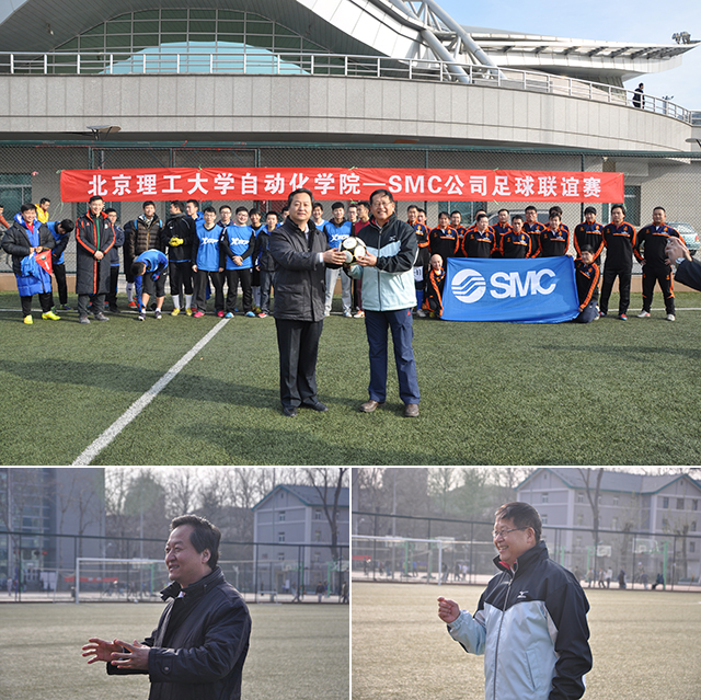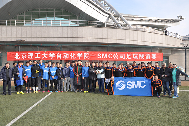此次足球赛由自动化学院和SMC(中国)有限公司联合举办,双方代表队分别是bb贝博自动化学院师生组成的联合球队、SMC(中国)有限公司员工组成的SMC足球队。自动化学院院长兼党委书记王军政、SMC公司总经理赵彤以及学院部分师生和公司一些员工现场观看了本场球赛。