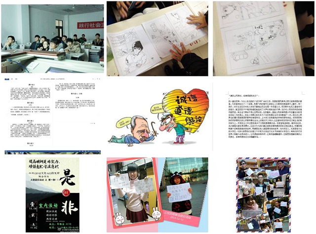 在以“肩负公民责任,修身明德我先行”为主题开展团日活动的支部中,团日活动以微小说、微漫画、微电影等创作比赛的形式展开。新颖的活动形式调动起支部成员的积极性,涌现出一批优秀的主题创意作品,在创作中学习,在学习中创作,同学们在自己的探索中不断了解到“爱国、敬业、诚信、友善”对于每个公民的重要意义。