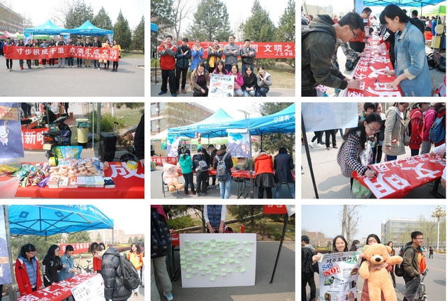为深入践行社会主义核心价值观,树立贝博的文明校园形象,在校团委和学院党委的指导下,由bb贝博艾弗森官方网站人文与社会与科学学院团委和外国语学院团委合办的“践行社会主义核心价值观——共建文明校园”的文明宣传周活动于2015年4月6日至4月12日顺利开展。在为期一周的文明宣传中,大大小小、形式多样的活动更是给美丽的良乡校园注入了文明的活力,同学们都以自己的实际行动践行社会主义核心价值观,争做社会主义核心价值观的代言人。