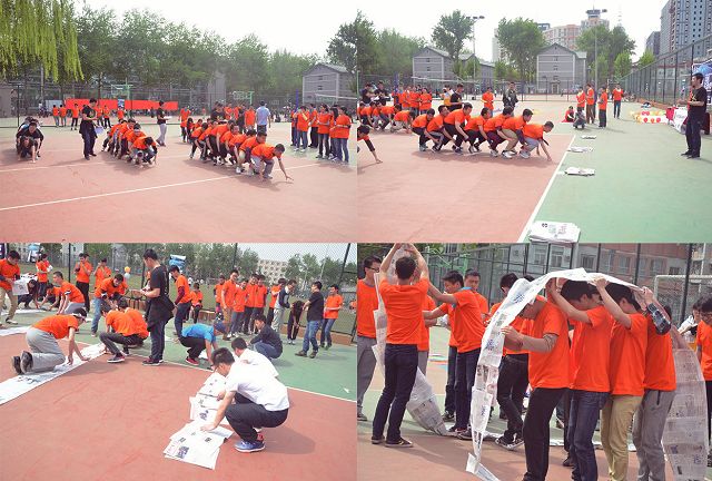 “蜈蚣跑”和“风火轮”为组合接力环节,同学们在各自队长的指挥下,喊着整齐划一的号子奋力“跑”向终点。