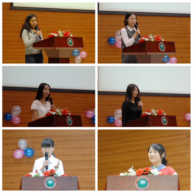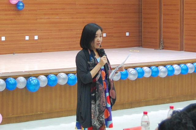比赛由一段主题视频拉开序幕。每位选手围绕视频内容展开3分钟的主题演讲,随后评委围绕演讲内容进行提问,最后累计积分。第一个上台演讲的是来自2014级的孙奥亚同学,她的发音纯正、地道,富有感染力,语速适度,她与场下的观众时有互动,获得了评委的赞许。来自2015级的贺嘉韵同样表现不凡,演讲流利、自如,层层铺垫,回答也恰到好处。来自艺术与设计学院的刘蕴苇同学以柔和的语调,幽默的语言,配合适当的肢体语言,吸引了全场同学的注意力。随后,林思辰同学以演说结合的方法,展现了她的独特演讲风采,生动、活泼。让人印象深刻的还有2014级的阿丽莎,这已是她第二次参加本次大赛,去年她也有不俗的表现。演讲的过程中她面带微笑,极具亲和力。无独有偶,刘岳青同学也以她幽默、诙谐的英语,打动全场的观众。随后的游戏环节,“你来比划我来猜”使得众多同学纷纷参与到其中,气氛热烈。
