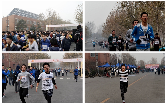 。。校长助理郝志强为比赛发令。随着发令枪响,千余名师生开始了挑战严寒的征程。随着比赛的推移,上届季军、基础教育学院信息一部牛建林以明显优势率先撞线获得男子冠军,基础教育学院机械学部江浩博、时天宇分获亚军、季军;来自管理与经济学院的王静怡获得女子冠军,基础教育学院信息二部的李滢和机械学部的王晨分获二、三名。郝志强、韩棋、方蕾分别为获奖选手颁奖。