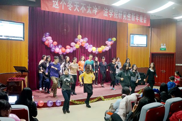 高歌迎元旦,激扬舞青春。 2015年12月29日晚,由法学院研究生会主办的2015年bb贝博艾弗森官方网站法学院“这个冬天不太冷”研究生冬季晚会在七号楼108举行。法学院党委副书记副院长张爱秀老师、环境法所龚向前老师、诉讼法所周建华老师、办公室主任王福亮老师、研究生教学干事孙海燕老师、本科生教学干事赵静老师、财务干事刘一诺老师以及法学院团委书记聂宁宁老师与研究生们一同欣赏了这场青春盛宴。