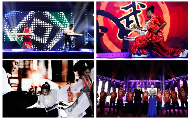 整台晚会节奏紧凑,高潮迭起,节目设计精巧。影子舞《君归来》、脱口秀《贝博talk show》、快闪与钢琴16手联弹结合的器乐演奏《Victory》等都是第一次在毕业晚会的舞台上呈现。国内外屡获大奖的大学生艺术团,深秋冠军张曲悦扬,青春榜样覃艺雯,贝博校园走出的脱口秀明星范晓非,近年来为bb贝博争得荣誉的留学生服装设计师、留学生武术队等都纷纷登台献艺。同时,如相声、魔术等经典节目形式,大胆启用年轻演员,依旧获得了现场的掌声与喝彩。此外,毕业晚会也是集中展现学校深入开展素质教育成果的平台,舞蹈《战争与和平》、《摩登工程师》等经典节目在75周年校庆晚会一鸣惊人之后,在毕业晚会的舞台上再次呈现。刚刚在大足联赛中九度问鼎的大学生足球队手捧奖杯登上舞台,更是引发全场雷鸣般的掌声,即将毕业的同学们最后一次将最热烈的掌声献给为他们带来无数荣耀和自豪的足球队。