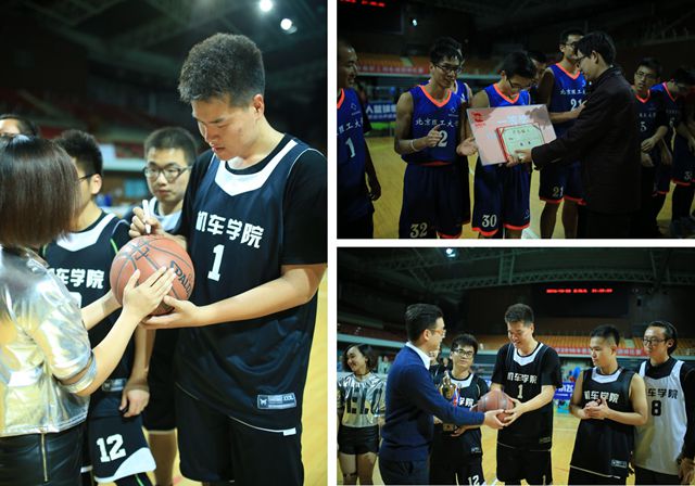 比赛结束后,两队队员在篮球上签名留念,校团委书记肖雄老师为获奖队伍颁发奖杯和证书。