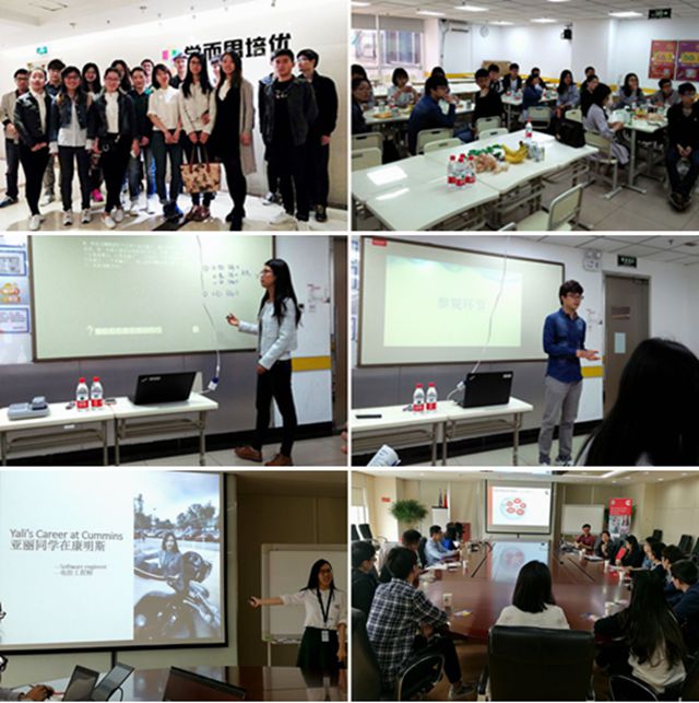 在模拟面试后,进入“笑迎职场”的第三阶段—企业认知行。本次活动目的在于通过实地走访与校友座谈,从横向与纵向两方面加深学生对企业的感知。北京世纪好未来教育科技有限公司与康明斯(中国)投资有限公司提供了大力支持与帮助,近40名学生参加了此次活动。4月20日上午,近20名同学来到北京世纪好未来教育科技有限公司学而思培优事业部,在校友胡垚老师的带领下,参观了海淀黄庄校区的教师办公区和学生授课区。在精彩生动的企业介绍和工作感想分享后,进入模拟面试环节。学生们积极报名参加模拟面试,感受与传统制造业不一样的试讲环节。最后面试官建议有意从事教育培训行业的学生在面试中应注意语音语调,积极调动学生积极性与互动,展现出对教育事业的热爱和激情。4月20日下午,10多名同学一起来到康明斯中国的总部,感受外企文化。康明斯(中国)的薪酬福利总监Karen Zhao、中国区招聘负责人Anna Zhao、校园招聘经理Kyle An、中国工程部控制工程负责人兼校友Carl Jiang、控制工程部技术专家兼校友Wang Yali和高级VPI服务工程师兼校友Li Siqi出席了本次座谈会。在相互认识后,康明斯(中国)的各位领导分别介绍了机构构成、企业文化、薪酬福利、校招标准等同学们感兴趣的内容。随后,校友亚丽以“亚丽同学在康明斯”为题分享了自己在康明斯(中国)工作7年的经历与成长。在最后的Q&A环节,同学们畅所欲言,分别就传统行业如何应对新能源崛起态势、能否提供实习机会、公司价值取向等感兴趣的方面进行提问,得到了校友和HR们的耐心解答。两场企业认知行活动在轻松愉悦的气氛中结束了,同学们普遍反应此次走近企业活动收获颇丰。
