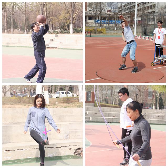 教职工组的比赛同样吸引着同学们的目光,投篮、踢毽子、跳绳,老师们不同于往日的严肃,展现出了青春活泼的一面,欢声笑语溢满了整个篮球场,那一刻他们是星光篮球场上最闪耀的明星……