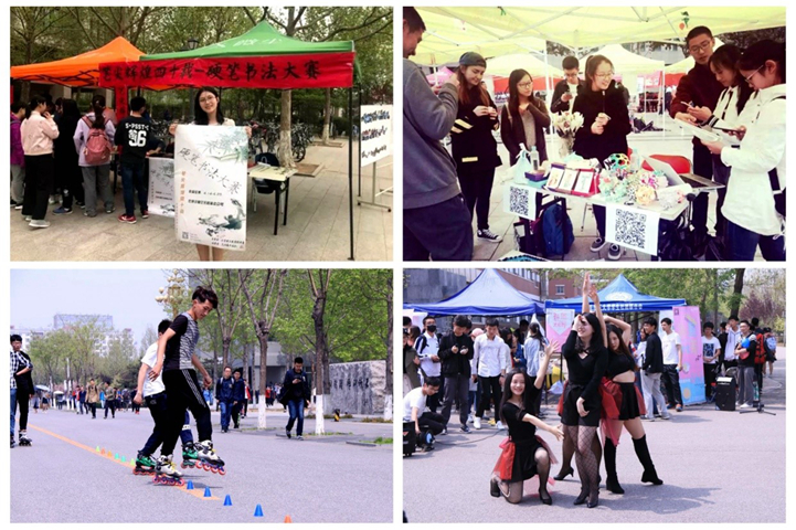 社团活动让春天里的校园热闹非凡。独立音乐协会的2018MIDI北京高校吉他弹唱大赛预选赛、粤文化交流社的粤语歌赛、乡琴协会的吉他公开课等活动带动了同学们对音乐的热情;心理健康协会的“风筝节”、计算机协会的“计算机文化月”、自行车协会的“骑行长街品豆汁”、酷爱轮滑俱乐部的校轮滑赛等活动鼓励同学们感受春日暖阳,释放青春活力;绿萌环境与资源保护协会的“再生纸缘,环保同行”、法师联盟的法律热点问题交流等活动引导同学们关注时事热点,增强责任担当;无阳斋书画社的“笔尖辉煌四十年”硬笔书法比赛、京工演讲团的第四届“贝博演说家”演讲比赛、魔方交流社的首届魔方大赛、DIY手工社的校园手工达人评选、折纸协会的折纸艺术展等活动在同学间引发热烈反响。