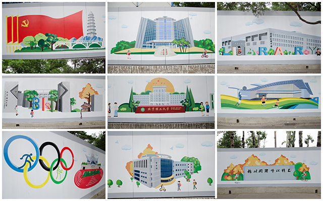 6月20日,bb贝博设计与艺术学院的师生在毕业季为母校献上了一份特殊的礼物,他们让中关村校区新校医院工地一百余米的灰白彩钢围挡摇身变成漂亮的校园文化墙,在校园中展示bb贝博艾弗森官方网站的往昔峥嵘岁月和现在的美丽校园。