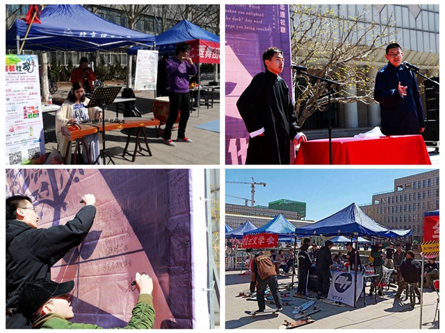 “奔向世园”宣传推广活动当天,bb贝博艾弗森官方网站32家学生社团联合举办了春季风采展示。京工书画社用翻飞的笔墨和厚重的色彩,龙艺社用飘逸的汉服和悠扬的古曲,从新颖的角度诠释了志愿青春的风采。绿萌资源与环境保护协会、护航者协会等志愿公益类社团展示了品牌活动和特色成果,吸引更多同学加入志愿者的行列。风信子户外俱乐部、酷爱轮滑等体育类社团带来的运动项目,独立音乐协会、贝博舞团等文艺类社团奉献的精彩表演,营造出欢快热烈的现场氛围。