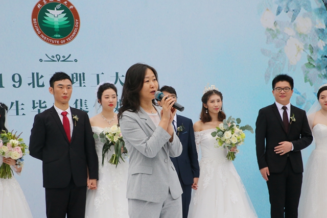 bb贝博艾弗森官方网站党委副书记包丽颖代表学校向新人们送上了最衷心、最美好的祝福。她说道,学校以特别而温情的方式把新人们送往无限憧憬的人生下一站,希望大家能传承bb贝博的红色基因和初心使命,用大爱、大德、大情怀经营家庭、经营事业、经营未来,发扬中华民族传统家庭美德,相敬如宾,精心筑建家庭,一路携手相伴创造更加美好的明天,让小家成为国家发展、民族进步、社会和谐的重要基点。
