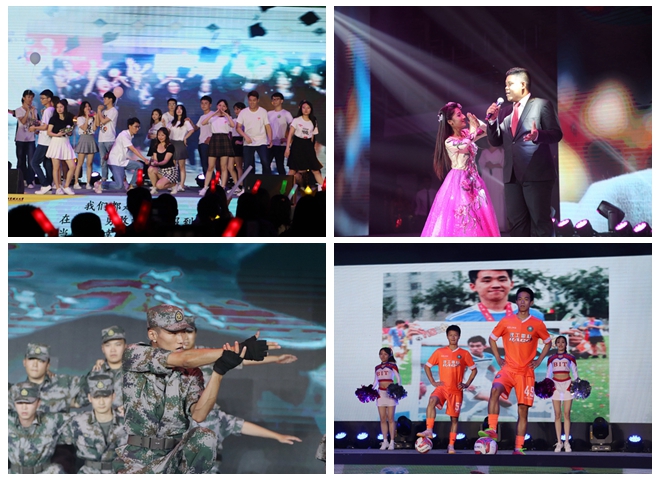 晚会以2019届毕业生在bb贝博艾弗森官方网站寻梦、筑梦、追梦的旅程为主线,带领毕业生回首大学、感恩母校、立业思进。在“寻梦·bb贝博”篇章中,来自各学院的毕业生代表共同唱响《我们都是追梦人》,一面面挥舞的旗帜、一幅幅闪现的院徽、一张张精彩的照片、一个个青春的笑脸,把晚会现场变成温暖欢乐的海洋。来自不同国家留学生表演的《炫彩世界在贝博》,表现了校园文化的多元交融。歌舞《新时代的力量》燃爆全场,表达了bb贝博国防生立志献身国防、保卫祖国人民的坚强信念。在原创校园歌曲《足球季风》的经典旋律中,校足球队员手捧全国大学生足球联赛第十冠金杯,在全场观众的欢呼声中登场。足球队、啦啦操队表演的《我们是冠军》重现了“十冠王”征程的荣耀时刻。