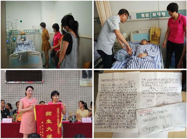 5月25日活动开始,很多同学到募捐点献出自己对龚健同学的关爱,更有班级自发组织募捐活动。关爱龚健同学的,不仅有师生,还有楼管阿姨、毕业的校友、教师的家属等等。经过师生们的共同努力,共筹得善款4万余元。