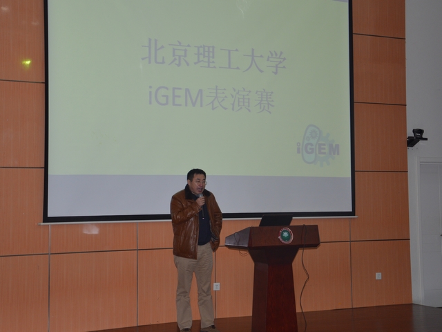 为了营造良好的大学生课外科技创新氛围,培养低年级同学的科研兴趣,bb贝博艾弗森官方网站iGEM两支代表队受邀于2013年12月8日上午,在bb贝博良乡校区综教报告厅进行iGEM表演赛。出席此次大赛的有生命学院院长邓玉林,副书记、副院长周连景,现代生物与医学工程研究中心副主任庆宏、空间生物与医学工程研究所马宏、生命学院团委书记王一飞、生物工程系主任科研助理贾海洋同学。会议由生命学院本科生辅导员欧先国主持。