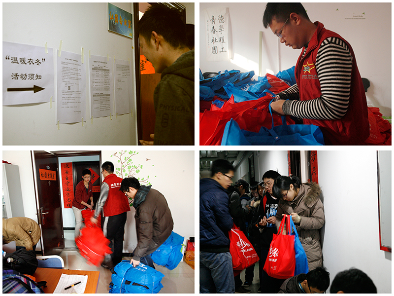 为积极响应团市委的号召,帮助青年大学生用实际行动“认识社会、回报社会”,积极倡导“随手微公益,传播正能量”理念,学校团委于2013年12月至2014年2月在全校范围内开展了“温暖衣冬——为最需要的人送去温暖”活动。