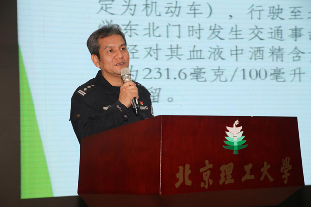李希宝警官通报了近两年海淀高校典型道路交通事故案例,特别强调了酒驾醉驾的危害性,提醒师生要关注公安交管部门的安全提示和道路通行信息,遵守交通法规,安全文明出行。
