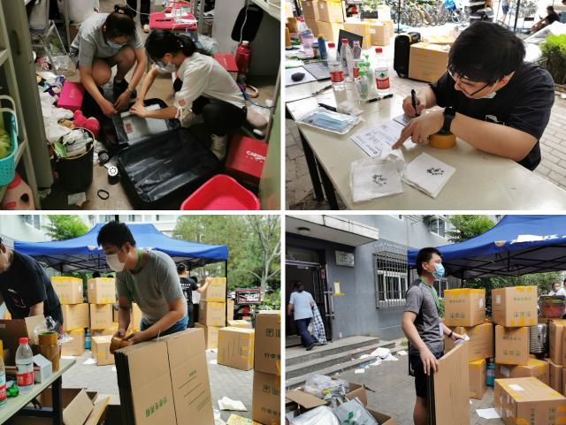 学院的辅导员们更是变成了“十项全能”的“超人”,调试设备、打包、搬运、安排午餐……每个人都是身兼数职地从早忙到晚,饭顾不上吃,水也顾不上喝,充电宝成了随身的必备品。“此次打包工作责任重大,每一件行李物品、邮寄运输都不能出问题,为了同学们能够顺利安心地毕业,我们再苦再累也是值得的。”毕业年级辅导员认真地说道。