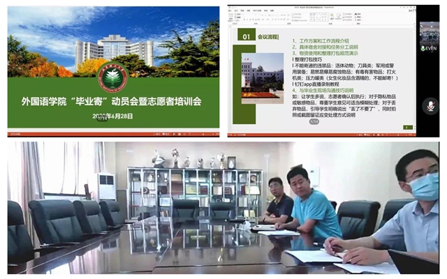 6月28日上午,学院召开“毕业寄”动员会暨志愿者线上培训会,成立毕业生行李寄送专项工作组。工作组组长杨晖和李京廉向志愿者师生表达了衷心感谢,并鼓励大家按照学校工作要求,把毕业生行李整理寄送工作做好。根据前期学生需求调研结果,学院对志愿者进行了合理分配,并对工作流程、物资使用、整理打包规范等进行了详细的培训。