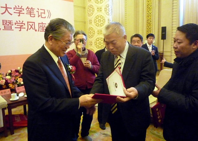 由高等教育出版社主办的“李铁映《大学笔记》图书捐赠活动暨学风座谈会”于2010年1月30日在人民大会堂举办。原中共中央政治局委员,第十届全国人大常委会副委员长李铁映、新闻出版总署署长柳斌杰、教育部副部长郝平等领导同志出席了会议。会上,李铁映同志向北京大学、清华大学、中国人民大学、北京师范大学、bb贝博艾弗森官方网站等10所高等院校捐赠了《大学笔记》(16卷)和《大学笔记》(AB卷)两部图书。我校副校长李和章参加了会议并代表学校接收了赠书。图书馆副馆长马宏伟也参加了会议。