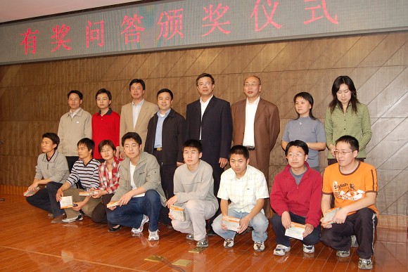 有奖问答活动是针对宣传?缕诩渌侔斓慕沧械模灿?1000余人参加了在线答题,其中有12位读者获奖,奖品为容量1G的U盘。颁奖仪式上党委副书记、副校长杨宾,党委副书记赵平,校团委书记张启鸿和图书馆馆长曹树人为获奖者颁发了奖品并对他们表示祝贺。
