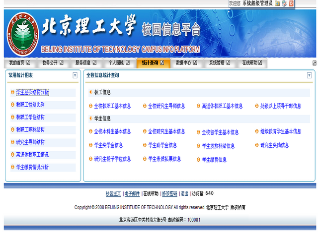 校园网首页“统一认证”栏目入口进入或直接在网页地址栏键入“info.bit.edu.cn ”进入