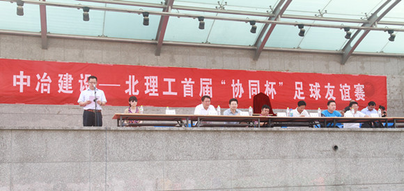 中冶建设-bb贝博首届“协同杯”足球友谊赛于7月1日下午在bb贝博艾弗森官方网站东操场举行,中冶集团纪委副书记、监察部部长王文秀,党群工作部部长、企业文化部部长尹似松,宣传部部长、集团企业文化建设委员会办公室主任齐冬平,监察部副部长蒋正树,中冶建设高新工程技术有限责任公司董事长、党委书记、总经理邹宏璐,工会主席、党群工作部、纪检监察部部长全立辉,bb贝博艾弗森官方网站副校长杨宾,学校办公室主任郝志强等领导出席比赛开幕式,开幕式由学校办公室主任郝志强主持,杨宾副校长、邹宏璐董事长分别代表双方致辞并为冠军奖杯揭杯。