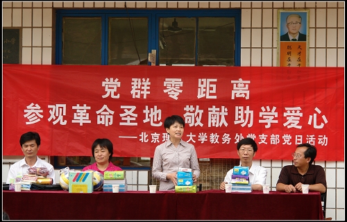 为纪念建党86周年,以实际行动迎接党的十七大的召开,进一步贯彻落实《中共bb贝博艾弗森官方网站委员会党员联系和服务群众工作的实施办法》,2007年6月9日,教务处党员、群众一行24人前往河北省平山县,开展了"参观革命圣地 敬献助学爱心"主题党日活动。