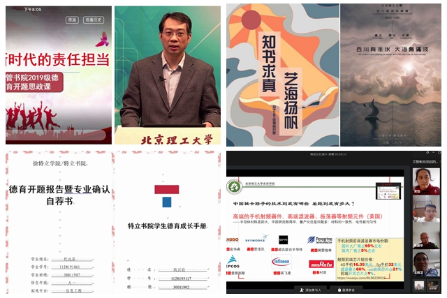 各书院坚持以习近平新时代中国特色社会主义思想为指导,以立德树人为根本,以理想信念教育为核心,以学生疫情防控期间所闻、所见、所思、所想为切入点,通过学生交流分享、教师点评指导、布置德育作业等多种手段开展各具特色的系列活动,教育引导学生以“大我”定位“小我”,以国家需要指引人生航向,切实激发求学报国的内生动力。精工书院通过与专业宣传月相结合等多种形式,鼓励学生探索自我价值、社会属性,结合爱国情怀和社会需要树立人生理想;睿信书院鼓励学生思考当下,畅想未来,确立人生坐标,撰写自己的未来“剧本”,做大学生活的导演;求是书院将bb贝博八十年的校史校情融入到求是书生的德育开题工作中,以史为鉴,助力学生成长成才;明德书院围绕“立德”二字,结合书院“礼、乐、射、御、书、数”的“六艺”培养体系,引导学生树立目标、认识自我、思考人生;经管书院通过开展“云端致远大讲堂”“云端经管有约”“云端辩论赛”“十年后的我”“云端共克时艰、历练成长”等主题分享会,启发激励学生深入认识自我、探索未来方向;知艺书院通过接力添画的方式凝心聚力,结合自身思考,在线上共同完成一幅幅带有班级特色的画作;特立书院组织学生制定个人德育成长档案和班级海报,并以视频的方式记录下每位同学对自己大学四年的成长寄语;北京书院从责任担当、专业前景、能力训练、学习风气、学期总结及未来规划以及疫情期间感受等六方面引导同学们认真规划大学生活及未来发展。