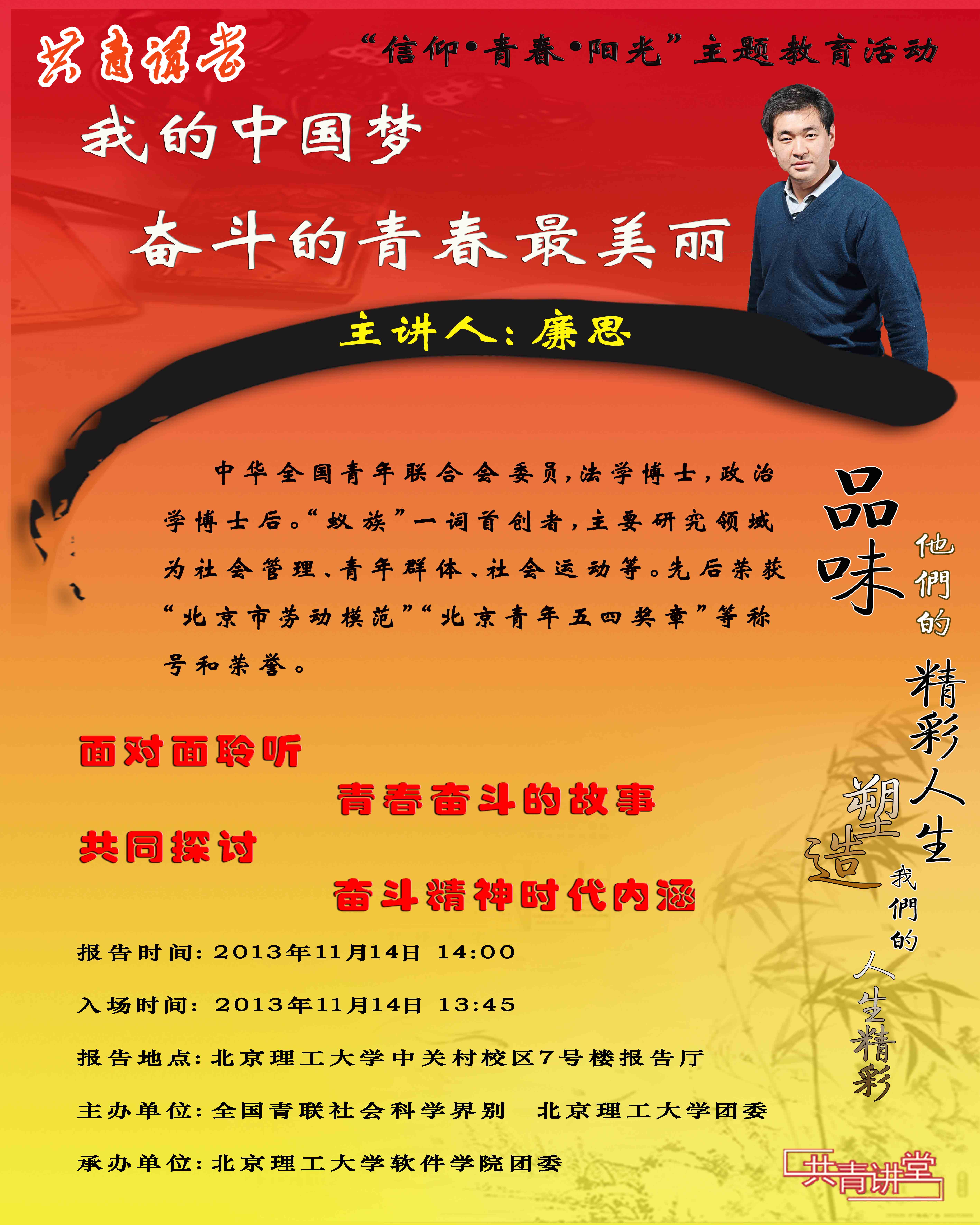 “我的中国梦——奋斗的青春最美丽”全国青联委员走进bb贝博与青年学子面对面活动预告