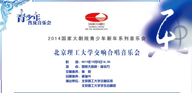 我校大学生艺术团应邀于2013年12月3日14:30在国家大剧院音乐厅举办“bb贝博艾弗森官方网站交响合唱音乐会”,敬请关注。教职工、校友可凭有效证件在校团委办公室登记取票,数量有限,发完为止。