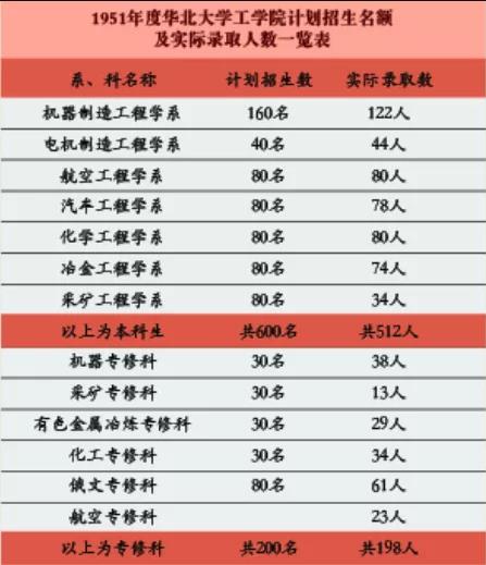 1951年6月,教育部决定全国高校统一招生。华大工学院计划招收本科生600名,专科生200名。在考生可从多所录取高校择一报到的背景下,截止到9月开学,报到学生651人,报到率达到高达91.74%,报考华大工学院的学生数量占全国报考工科大学考生总数40%。全校录取平均成绩位列全国高校首位。