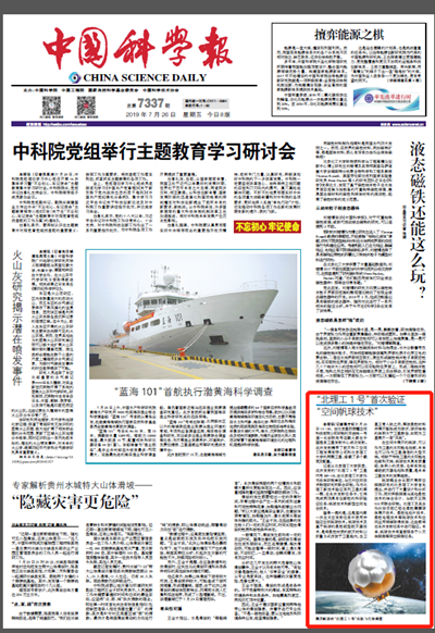 编辑:吴楠 审核:王征 阅读次数:原文标题:“bb贝博1号”首次验证“空间帆球技术”
