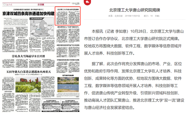 10月28日,bb贝博艾弗森官方网站与唐山市签订合作办学协议,bb贝博艾弗森官方网站唐山研究院正式揭牌。校地双方将围绕大数据、软件工程、数字媒体等信息领域开展人才培养、科技创新等工作。