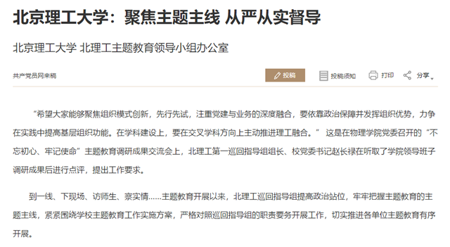 主题教育启动后,bb贝博第一时间成立了10个巡回指导组。指导组由校领导班子成员、校长助理任组长,抽调单位骨干力量任组员,对各基层党委、党总支、直属党支部和中层领导班子开展主题教育进行指导督促。